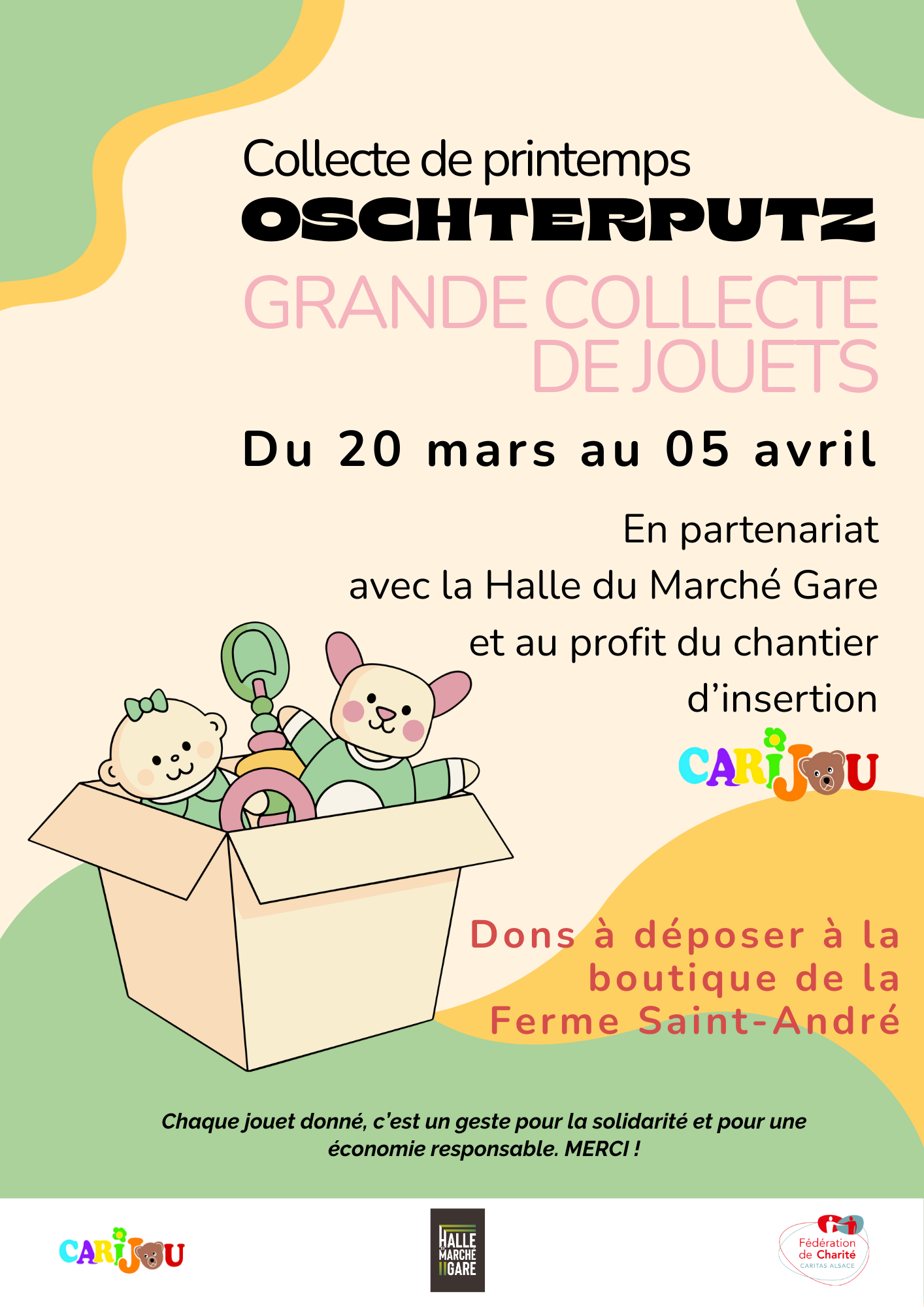 𝐃𝐮 𝟐𝟎 𝐦𝐚𝐫𝐬 𝐚𝐮 𝟓 𝐚𝐯𝐫𝐢𝐥, notre chantier d’insertion Carijou Strasbourg organise une grande collecte de jouets !